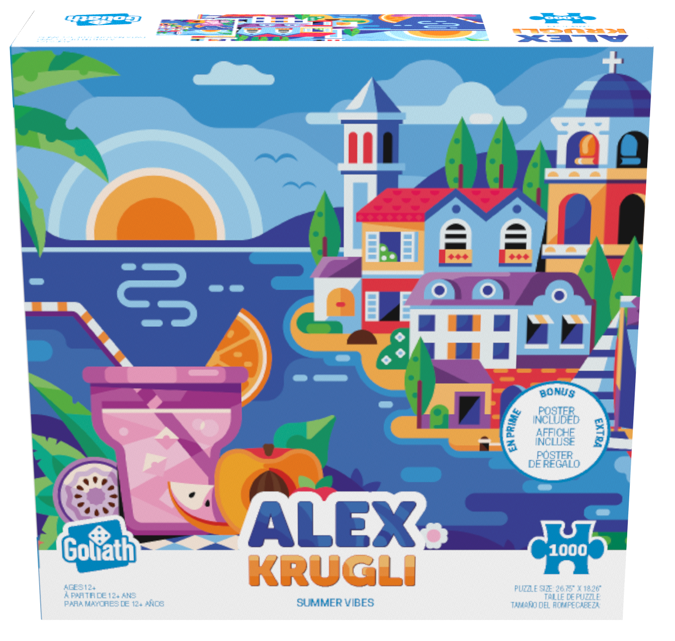 International artist Alex Krugli is known for his vibrant and eye-catching artistic creations. His signature works are found all over the world from marketing campaigns and mobile games to large format installations and art galleries. This 1000-piece puzzle measures 26.75 x 18.26 inches when complete and is made from high-quality blue board for ultimate fit and stability. Includes a 12 x 17 inch poster, so you can enjoy the art even after the pieces are put away. Recommended for ages 12 and up.