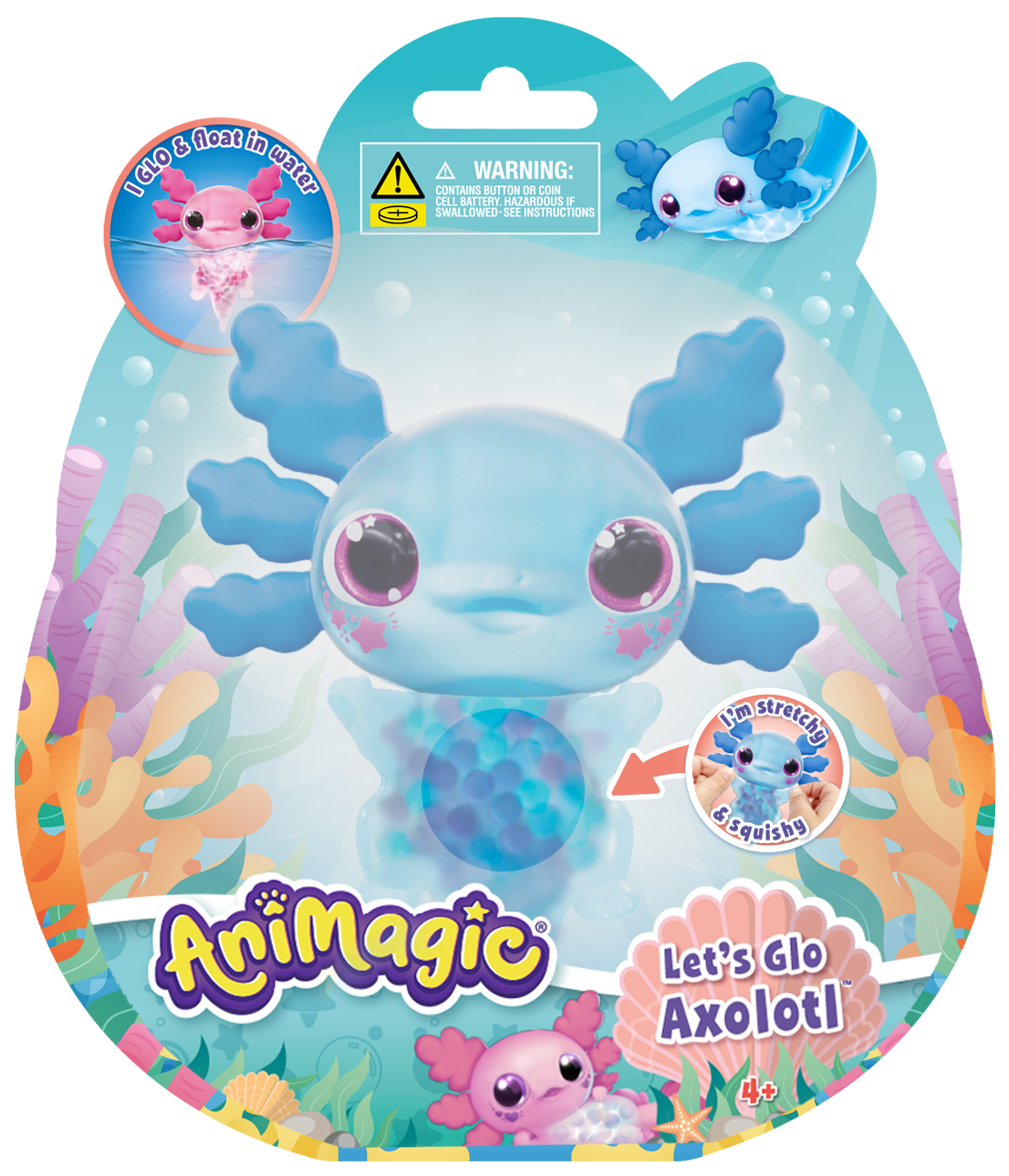Includes 1 Animagic Let’s Glo Axolotl Blue, recommended for ages 4 and up.