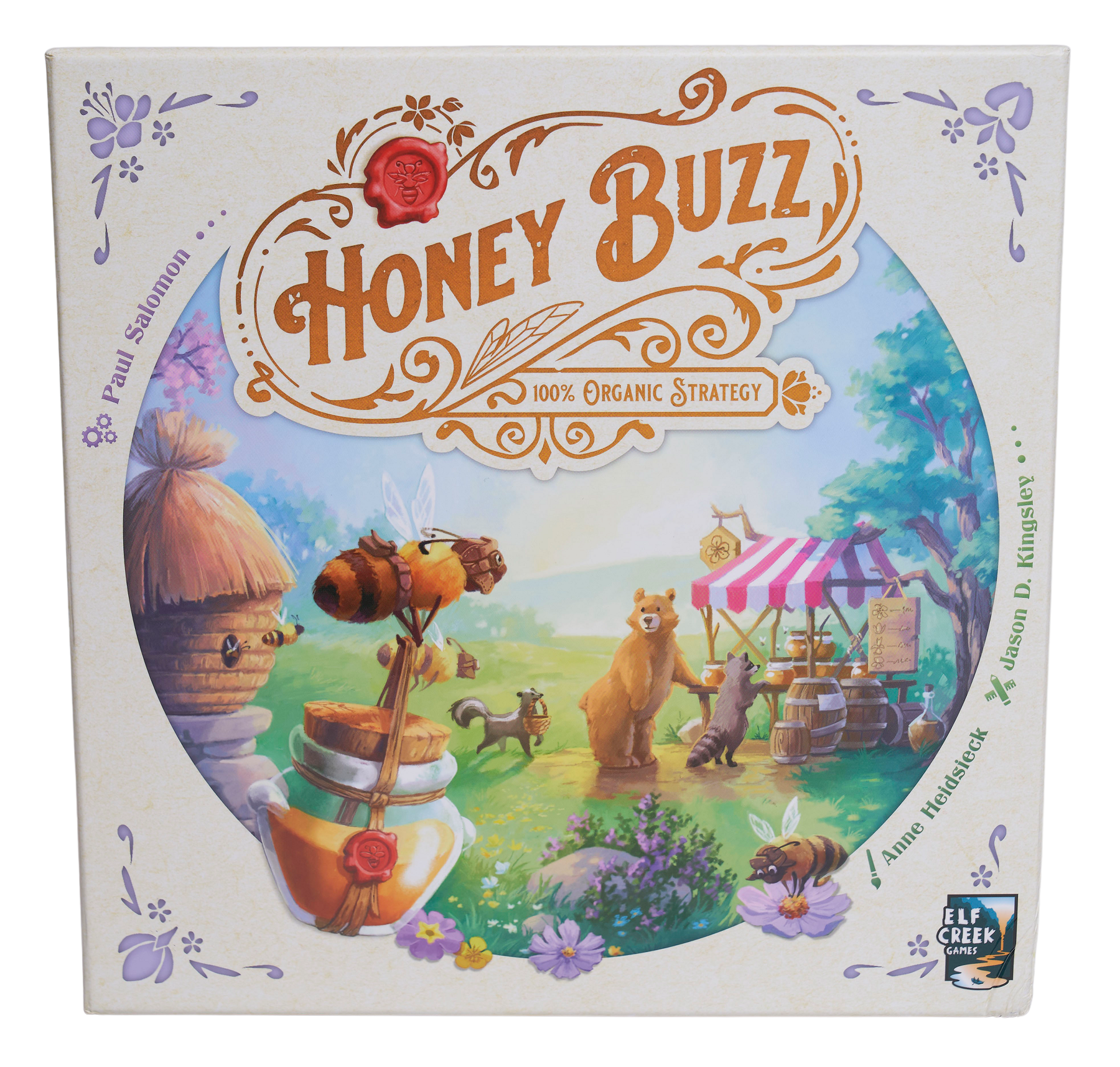 The bees of Sweetwater Grove have discovered economics and it’s time to get down to bee-ness! The queen demands that her drones sell their honey to find peace and prosperity. And now that Spring has arrived, it’s time to set up shop! It’s your job to build the hive, find nectar, and make honey to sell to all the woodland creatures. Expand your hive and attend to your queen in this beautifully illustrated competitive tile placement game. After all the orders have been completed, the hive with the most money wins! Recommended for 1-4 players, ages 10 and up.