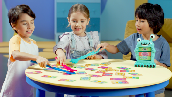 You gotta think fast with this monster! Spread the cards out on the table and grab a smasher. Press down on the monster’s eye to reveal which monster to find next. Be the first player to find it and SMASH your way to a win. But be careful, even if you’ve caught a monster, if it pops up again, someone might smash and grab it back! First player to collect 3 cards wins! Includes 1 Monster Spinner, 27 Monster Cards, 4 Smashers, and Complete Instructions. Recommended for 2-4 players, ages 4 and up.